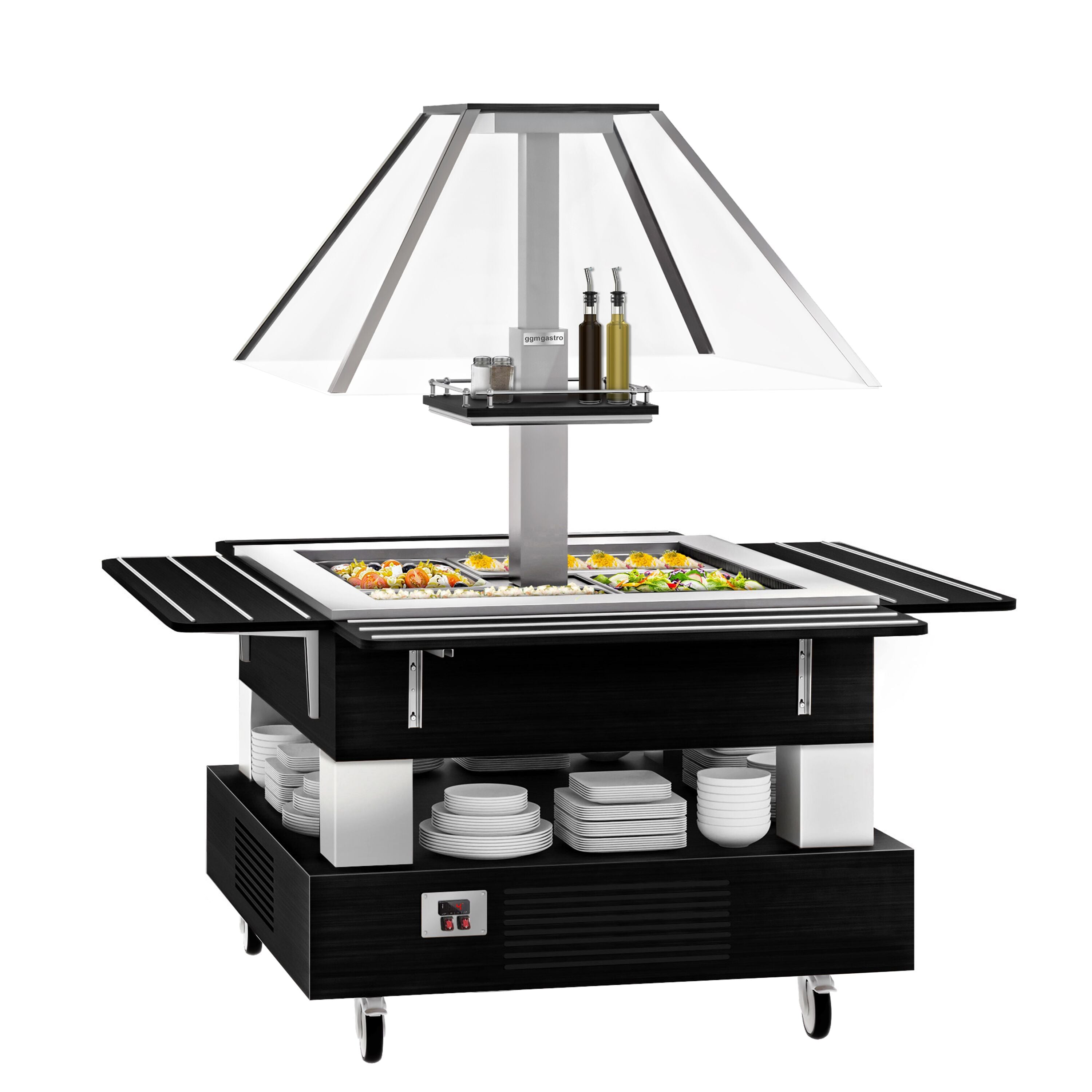 Bar sałatkowy DUBLIN - 1700 mm - z pochyloną szklaną pokrywą - na 4 pojemniki GN 1/1 - czarny