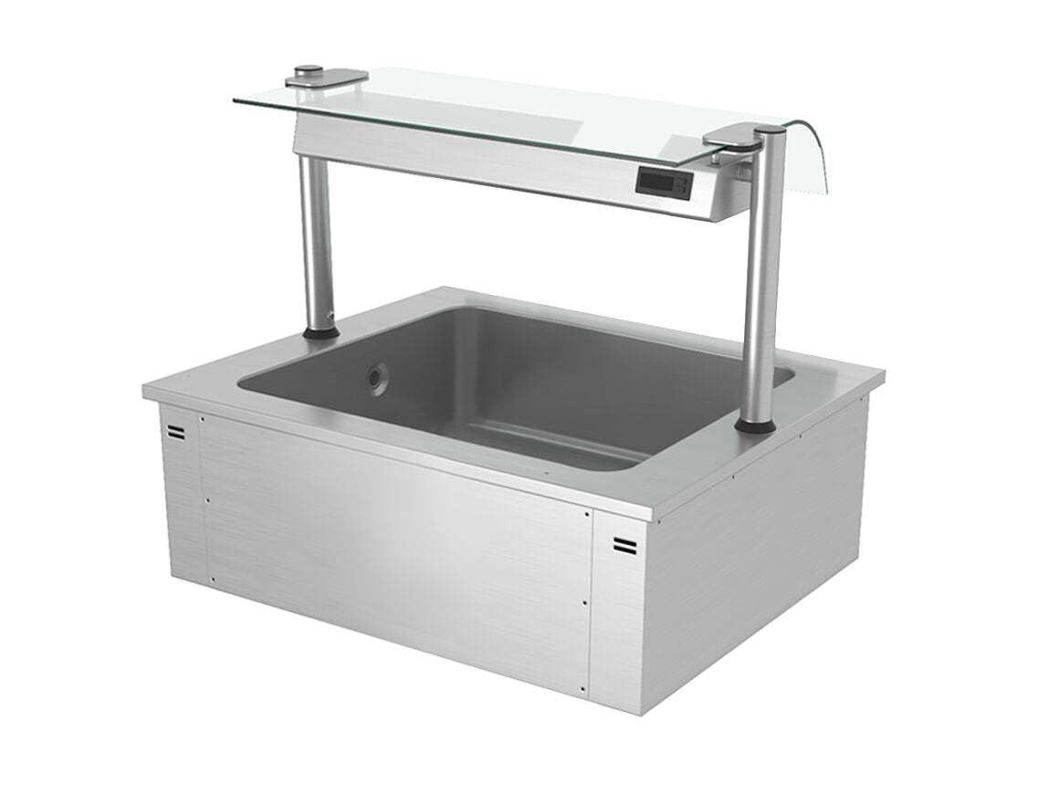Wbudowana wanna do ekspozycji na lodzie - 0,8m - 2x GN 1/1 - ze szklaną ochroną przed kaszlem