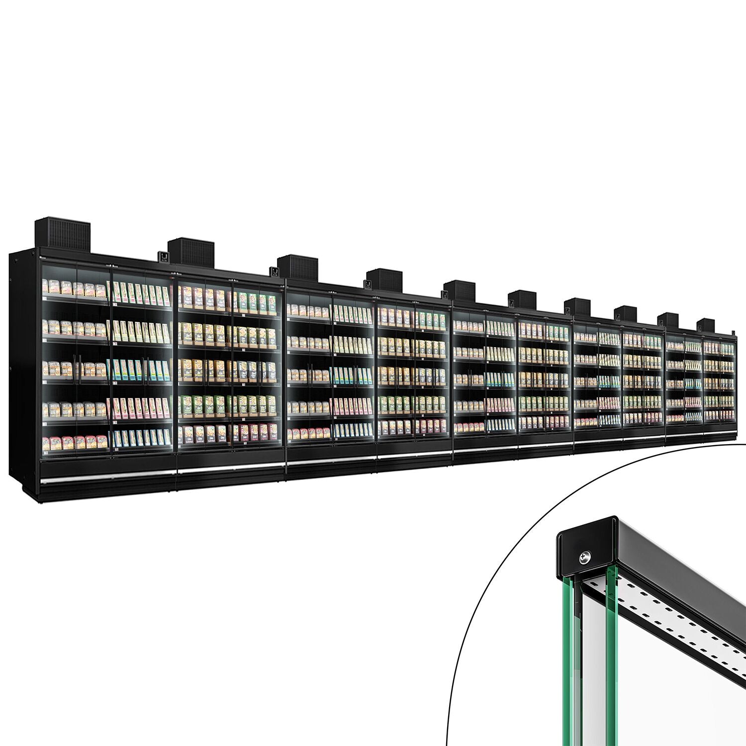 | Liczba drzwi na witrynę chłodniczą naścienną | 4 Szklane drzwi |